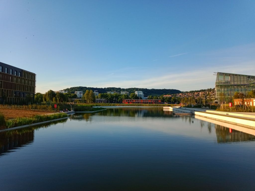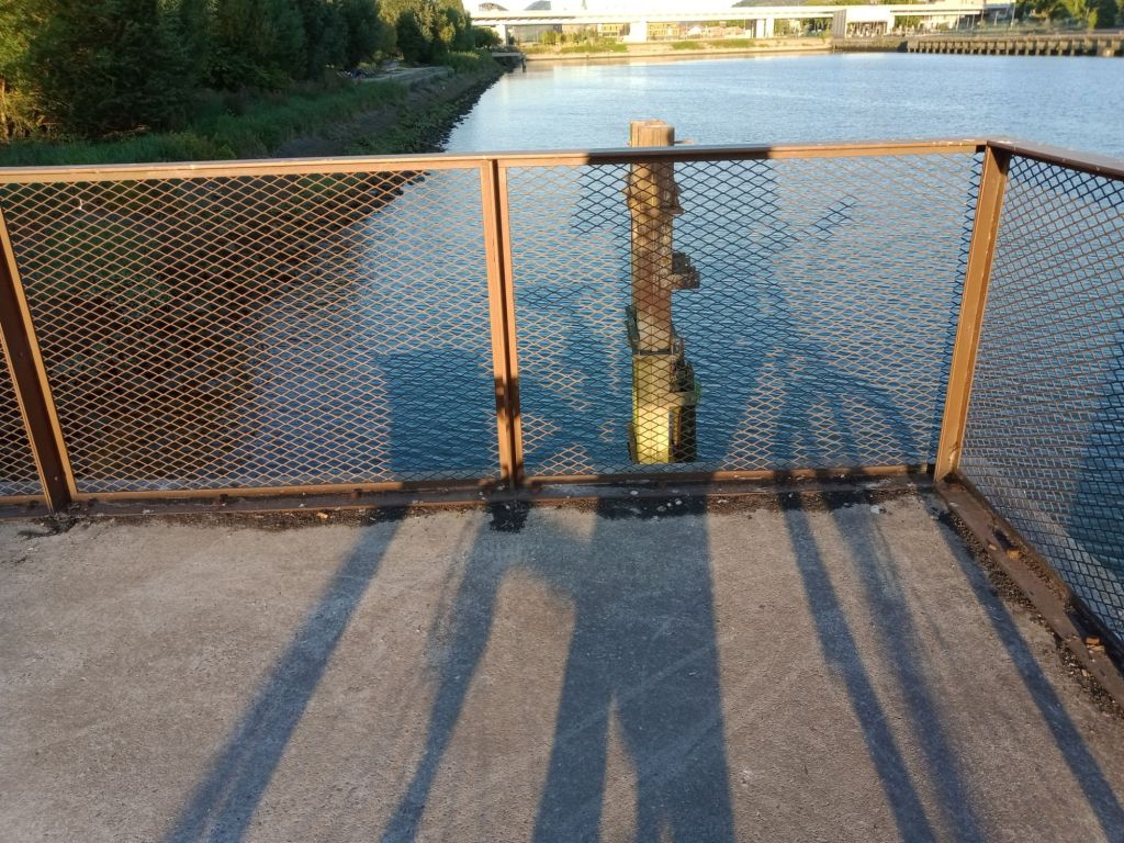 Son las 20h16 en el Écoquartier de Rouen y la luz del verano comienza su declinación áurea. El agua está estancada pero inmóvil puede todavía mostrarnos el camino hacia la belleza que nos hace falta. Un cochecito de bebé hace el camino con sus dos madres que conversan como aves vestidas de negro desde la nuca hasta los pies. Hubo antes enquistada en esta quietud una refinería que la historia oxidó hasta convertila otra vez en tierra. Los corredores apuran el paso para mejorar su media en la nube de los atletas. Tenías razón al ver la punta de esa angustia que quisiste abrazar pero los cables del titiritero no daban más línea. Me detengo frente a un salvavidas para consolarme obsesionado con el erotismo de las instrucciones de como reanimar un ahogado. Llevo las tripas llenas de fuego, llenas de té verde, los pies quieren seguir la danza y quiero hablar de palomas que incuban sueños rotos. Tomo la bicicleta azul y pedaleo hasta que la luz de los impresionistas no me permita ver más allá del ombligo. En el salvavidas una pintada en blanco dice Shou, je t’aime toujours. Alguien responde en negro Moi aussi.